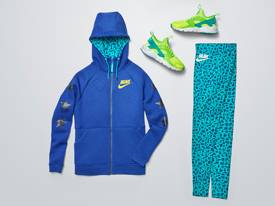 Apparel: Full zip hoody, leggings“[My inspirations were] Kermit, the beautiful things I saw in New York and my stay at Doernbecher. I didn’t know Nike had a big library of fabric. The thousands of swatches were amazing. I got the chance to do something even adults don’t get to do, and my shoe will help other kids. That’s pretty cool!”