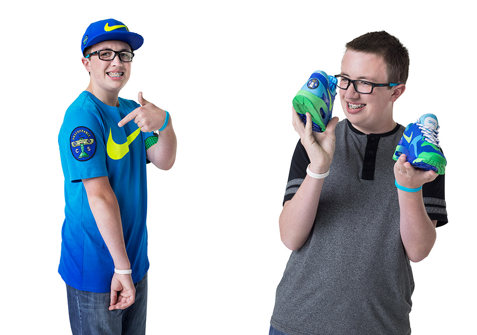 Apparel: Full zip hoody, universal print socks“The inspiration of my shoe was to honor all of the people who helped me during my recovery. I chose many different symbols and colors to represent these people and communities. My favorite part of the design process was all the times I got to meet with my team and collaborate with them on how to make my shoe better. It made me feel like I was an adult, because they really listened to me and didn’t ignore my ideas.