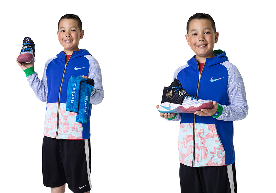 Apparel: Full zip hoody, leggings“I had no inspiration, except for having fun and letting my mind barf all over the shoe! The only part with a great inspiration is the soul of the shoe (inside)! I want people to know that this is a very lucky and rare experience for children to do.”