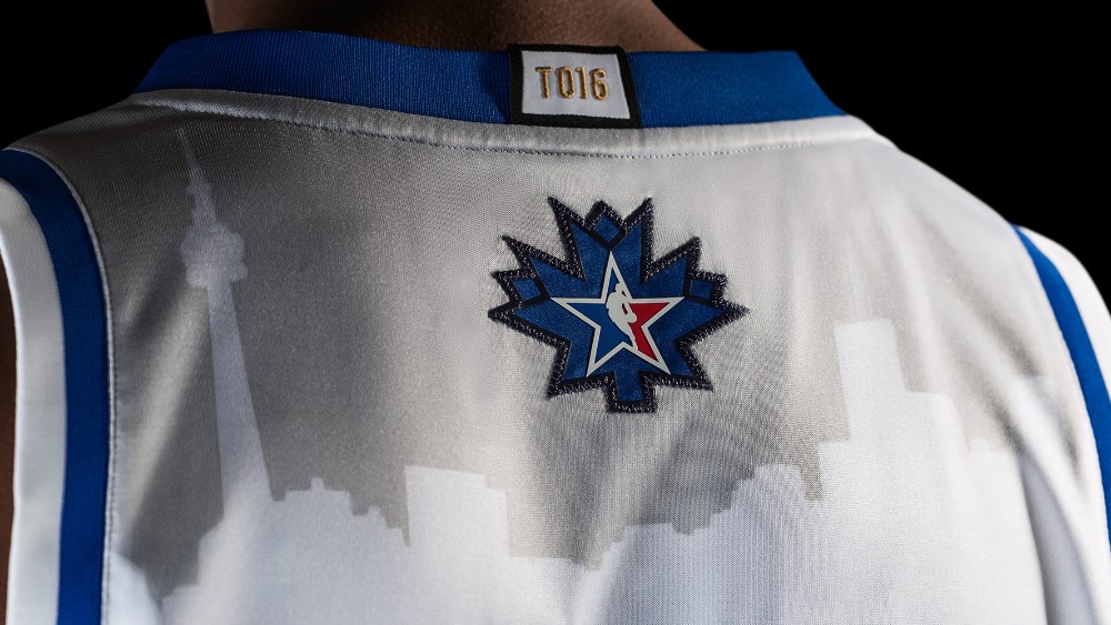 The red-and-white Western Conference and white-and-blue Eastern Conference uniforms feature a maple leaf overlay on the front of the jerseys as a tribute to the national symbol of Canada, while Toronto’s cityscape is featured across the back to represent the host city. Clean, single-layered fonts are a nod to the NBA’s early days in Toronto, where the first NBA game was played on Nov. 1, 1946, between the Toronto Huskies and New York Knickerbockers.