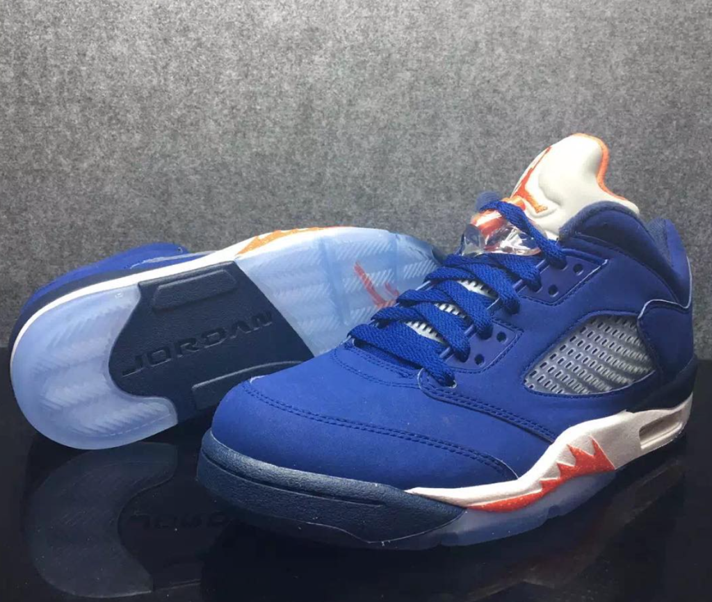 UPDATE: We have new detailed pictures of the Air Jordan 5 Retro Low ‘Knicks’ who has a colorway description of Deep Royal Blue/Team Orange-Midnight Navy and is expected to launch across seas in Asia this March 1st with a U.S. launch following shortly after. When a confirmed US launch date is known we will update you guys accordingly.