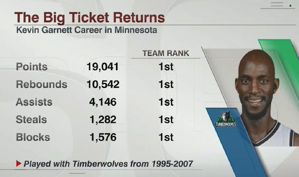 Garnett’s “homecoming” is a big deal for the obvious and nostalgic reason that he started his career in Minnesota and is the franchise’s all-time best player. As told by the stats below:
