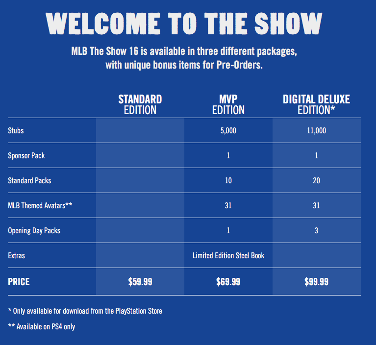 Along with the trailer, we get a look at all the differences between each edition of The Show 16.