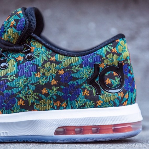 Continuing with the “Floral” theme that started with the Nike KD 6 “Aunt Pearl” which released last week, the Nike KD 6 EXT “Floral” is slated to release this month. Expect to be able to get your hands on this pair of Multi-color/Black on Nike sportswear website 3/7 and world wide on 3/15.