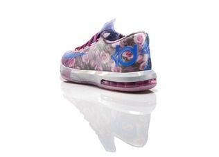 The KD VI Aunt Pearl pays tribute to KD’s aunt with a pink floral pattern on the upper and highlights of blue with subtle pearls. The floral motif on the shoe is similar to the pattern on a robe that Aunt Pearl often wore.