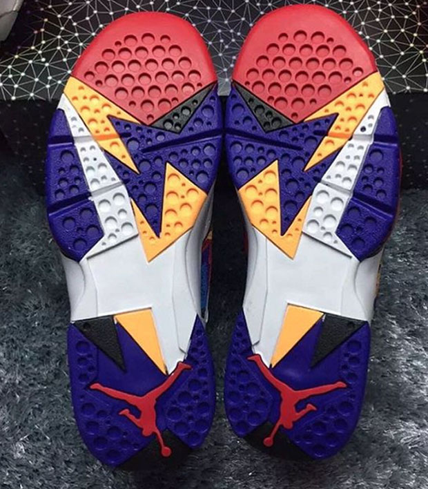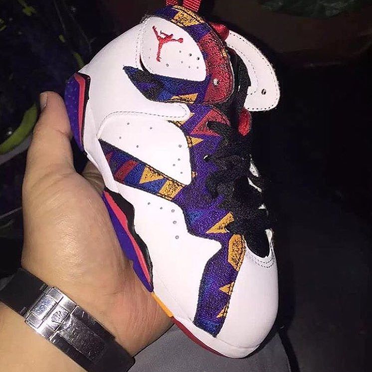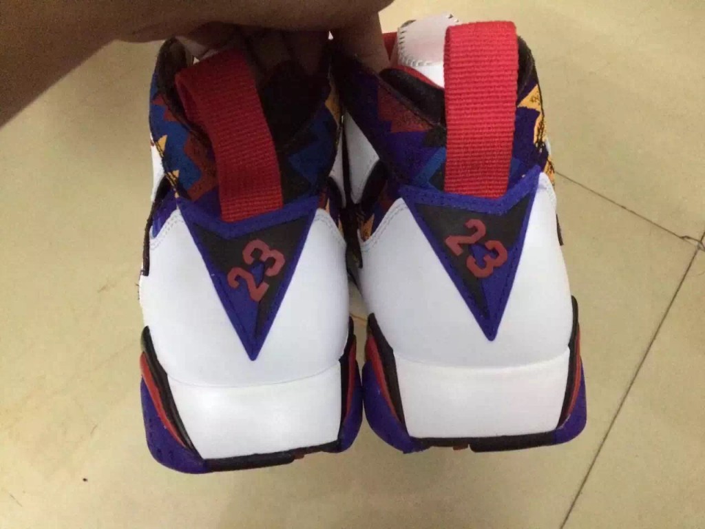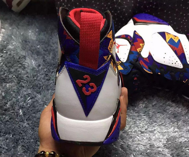 The more I see pictures of the upcoming Air Jordan 7 Retro ‘Nothing But Net‘ I become more and more of a fan. When it comes to Jordan 7’s I was never really into the white make up and then a pattern design on the upper but here, it works for me. As we learned from the revealing of this colorway it has been inspired from the classic McDonald’s commercial where MJ and Larry Bird were starring in but it is the sweater that Mike wore which sparked this design on the sneakers.