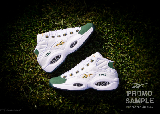 Packer Shoes, who are known for their special releases when it especially comes to Reebok Questions… and what do you know thats what we are here for now. Today the store located in Teaneck, NJ made an announcement of two new colorways both sporting all white bases but one Purple and Gold accents and the other Green and Gold accents. The first is reminiscent of Kobe Bryant as a Laker with his original number 8 and the second is reminiscent of when LeBron was at SVSM with the number 23.